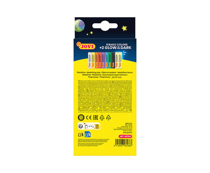 PLASTILINA Box 1 bars 15 g 8 basic colours + 2 glow in the dark