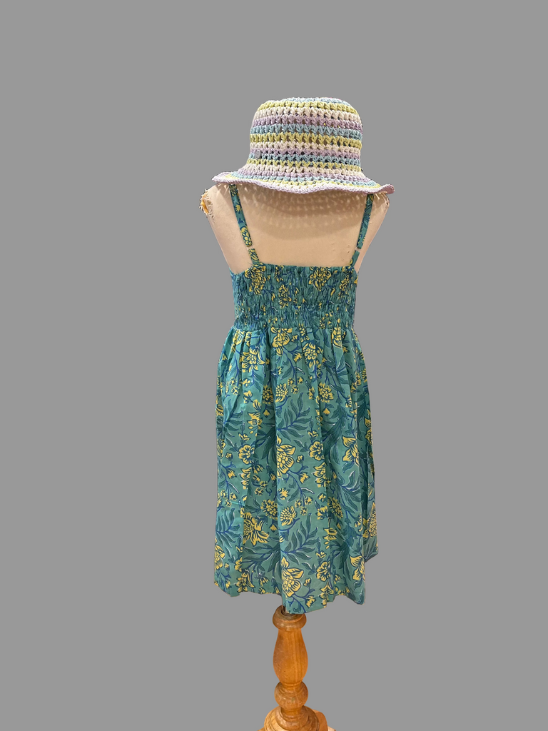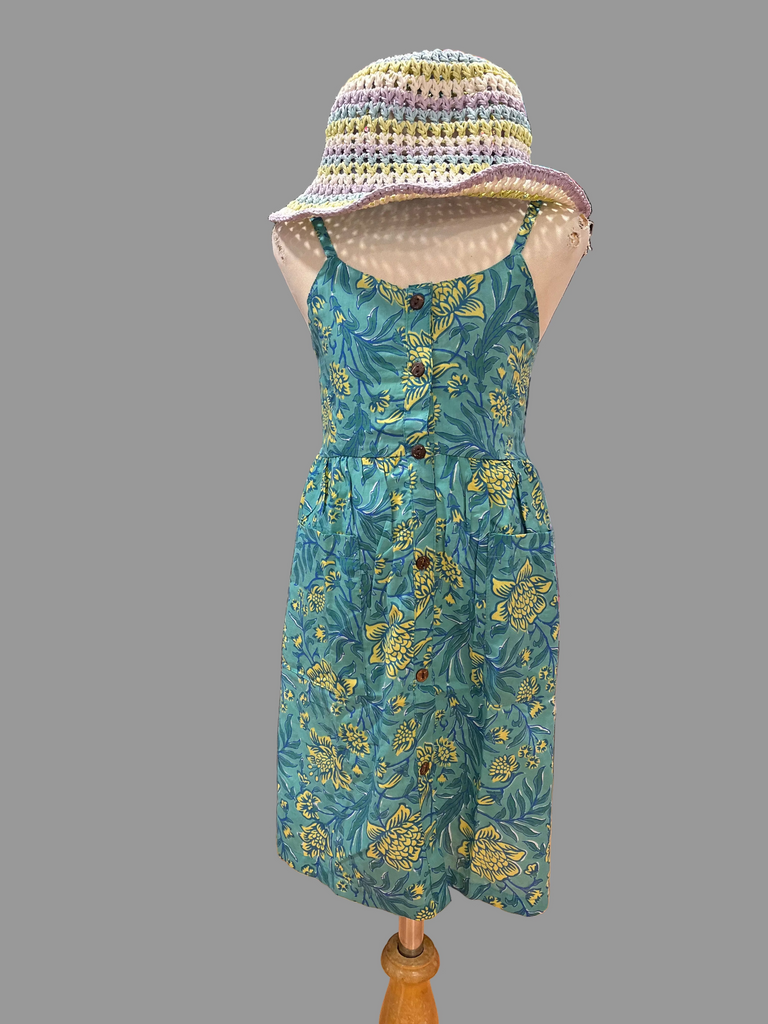 The Sandra Button Dress is your new favourite! 👗✨ Made from super comfy block print cotton, this dress is perfect for playtime and adventures. It has the coolest coconut buttons and straps you can adjust to fit just right. The shirred back gives you plenty of room to move and stretch, and guess what? There are pockets! 🎉 Pockets for all your treasures and goodies. Wear it on sunny days, to parties, or just because – this dress does it all! 🌞💕