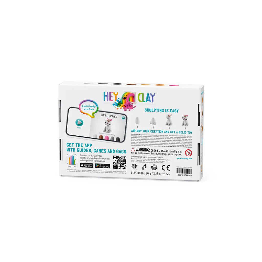 Shepherd, Bull Terrier, Yorkie. Colourful modelling air-dry clay, 6 cans, with fun interactive app for kids 3 years and older.
