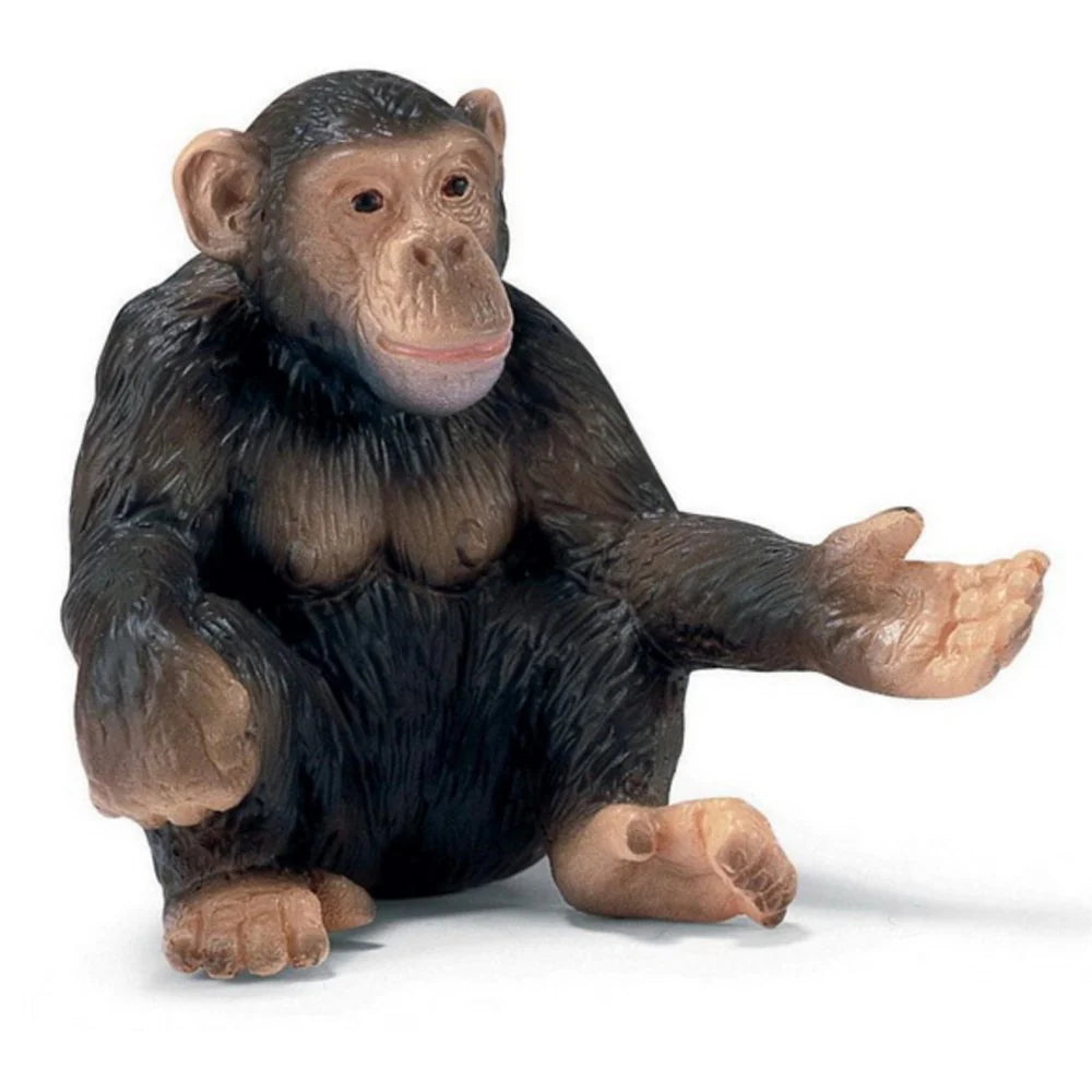 The Schleich Female Chimpanzee figure shows her in a seated position with her arms extended to either side. The arms of a chimpanzee are actually longer than it's legs. Most think that a chimpanzee is a type of Monkey, but they actually belong to the Ape family, which is different from the Monkey family.