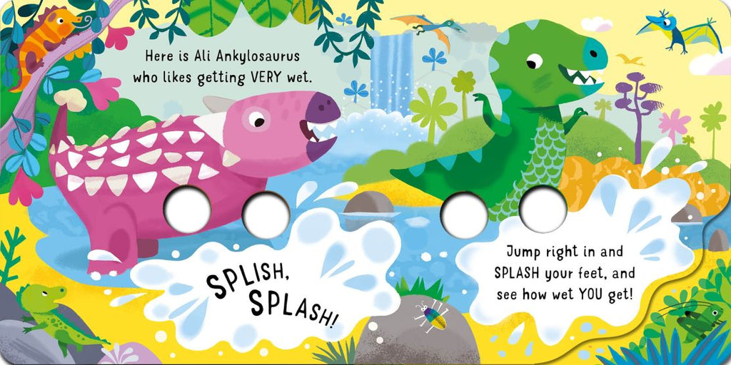 Little children and their grown-ups can stick their fingers through the holes to become the arms and legs of little T.rex and friends to tell a simple story. The little dinosaur plays with Tess Triceratops, splashes in a stream with Ali Ankylosaurus and learns how to stomp before returning home for a big surprise.