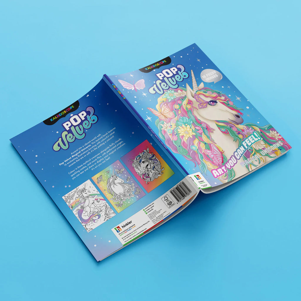Ascend into a sparkling world with Pop Velvet Magical Unicorns. This textural book features 16 enchanting illustrations bursting with colourful velvet accents that are so soft, it’s like petting a unicorn! Colour in these mythical creatures alongside fluffy clouds, glittering castles, and more! Plus, with perforated pages, you can tear and share or display your magical creations. 32-page book filled with enchanting, velvet-accented illustrations for a sensory colouring experience. Fuzzy artwork on cover makes this a cool gift. Perforated pages to tear and display your art!