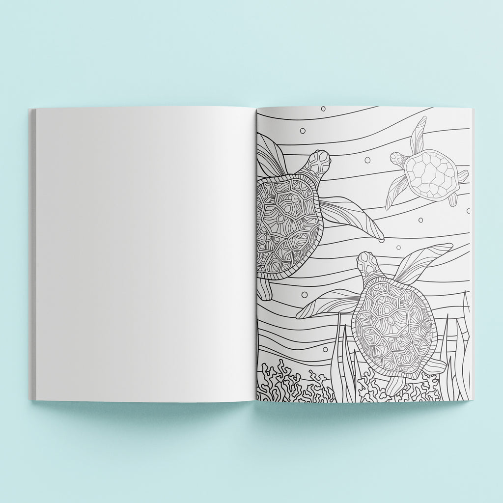 Dive into the sea's embrace and watch graceful marine creatures swim past intricate coral reefs and weave through majestic seaweed forests. Each page offers detailed artwork that evoke gentle tides washing over your mind, inviting you to find stillness as you colour. Whether you are new to colouring or an aficionado, these stunning and intricate pictures have something for everyone.