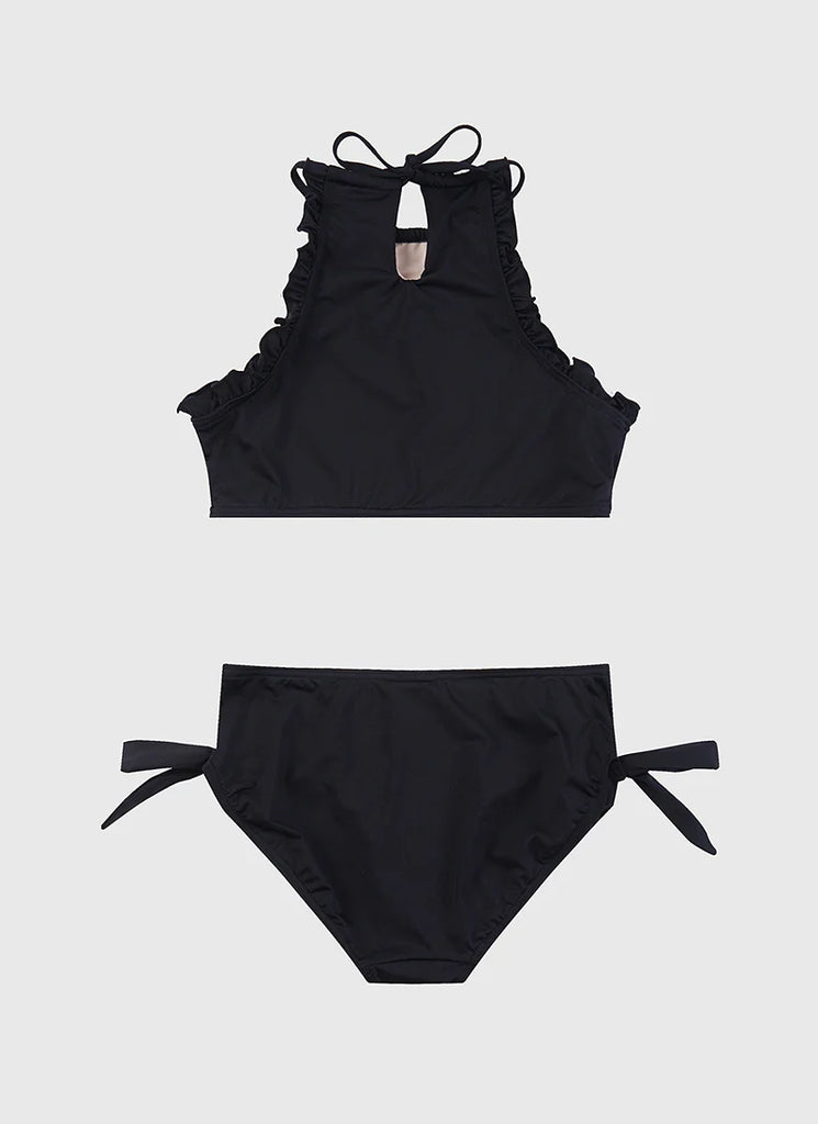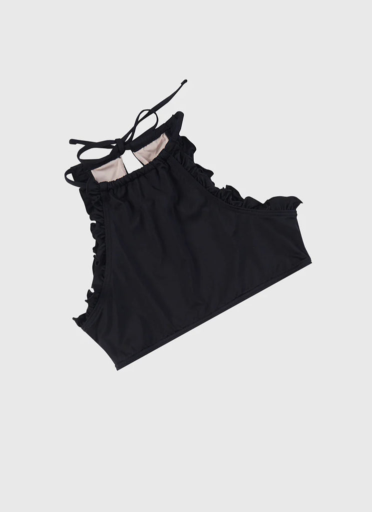 - Adjustable halter neck tie with frill detail and faux tie side pants