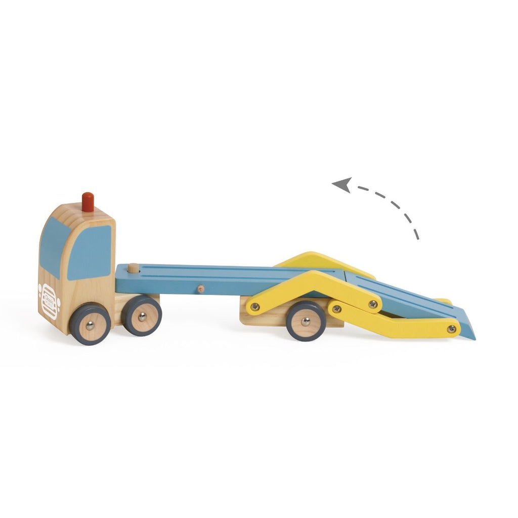 This new wooden car transporter is a durable and high-quality toy set that includes 1 truck and 3 vehicles. It helps kids develop fine motor skills, movement, and hand-eye coordination while providing hours of loading and unloading fun, coordination and fire/motor skills.