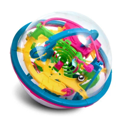 The concept is simple verging on downright childish, as players must twist, turn and tilt this funky transparent orb in order to guide a little metal ball through the crazy three-dimensional maze of platforms, holes and spirals suspended within.
