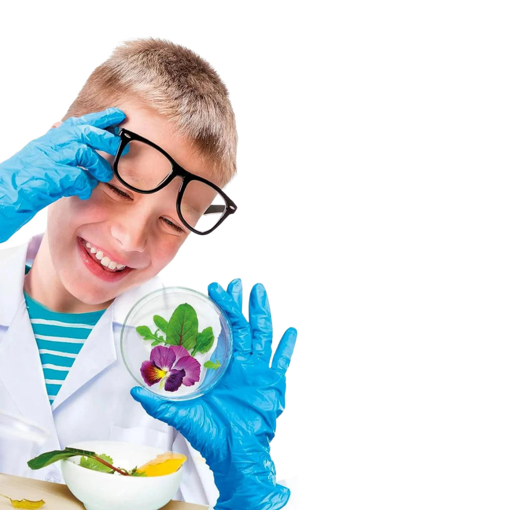 This science kit contains all the equipment you need to build your very own lab at home including a microscope, a movable LED light with adjustable intensity, plastic slides, beakers, pipettes, a magnifying glass, and information booklet with over 50 different experiments and special tests.