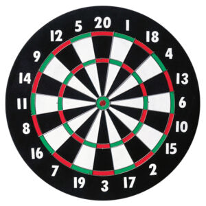Featuring a round wire paper dartboard that is suitable for the whole family. It is 38cm in diameter with two sides, one with a traditional dartboard, the other has a target dartboard game.