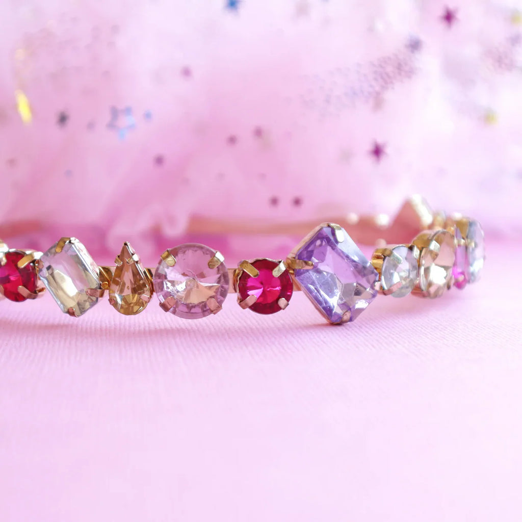 Simply one of the most beautiful jewel-encrusted headbands you will ever see, a real find for anyone who jewels or headbands. Each jewel has been curated to give a wonderful luxe impression with colour, shape, and orientation. Everything is set just so to create a beautiful look for a very special little one.