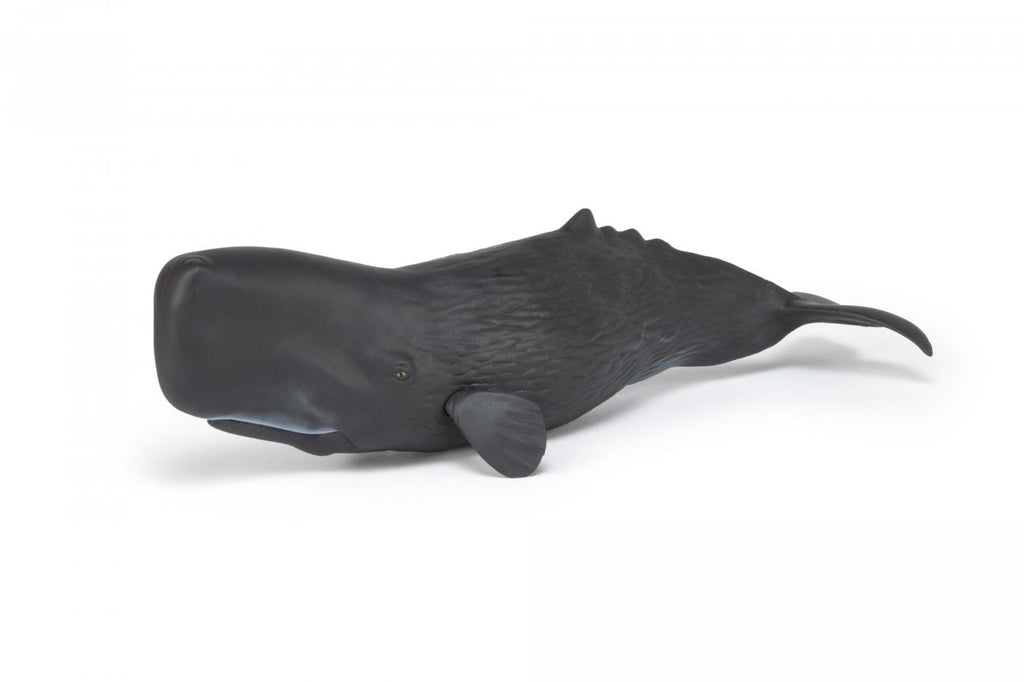 Sperm whales are the largest of the toothed whales. Males can weigh up to 50 tons, which is more than 700 people combined. Their head is about one-third of their body length, and they have the largest brain of any animal on Earth.