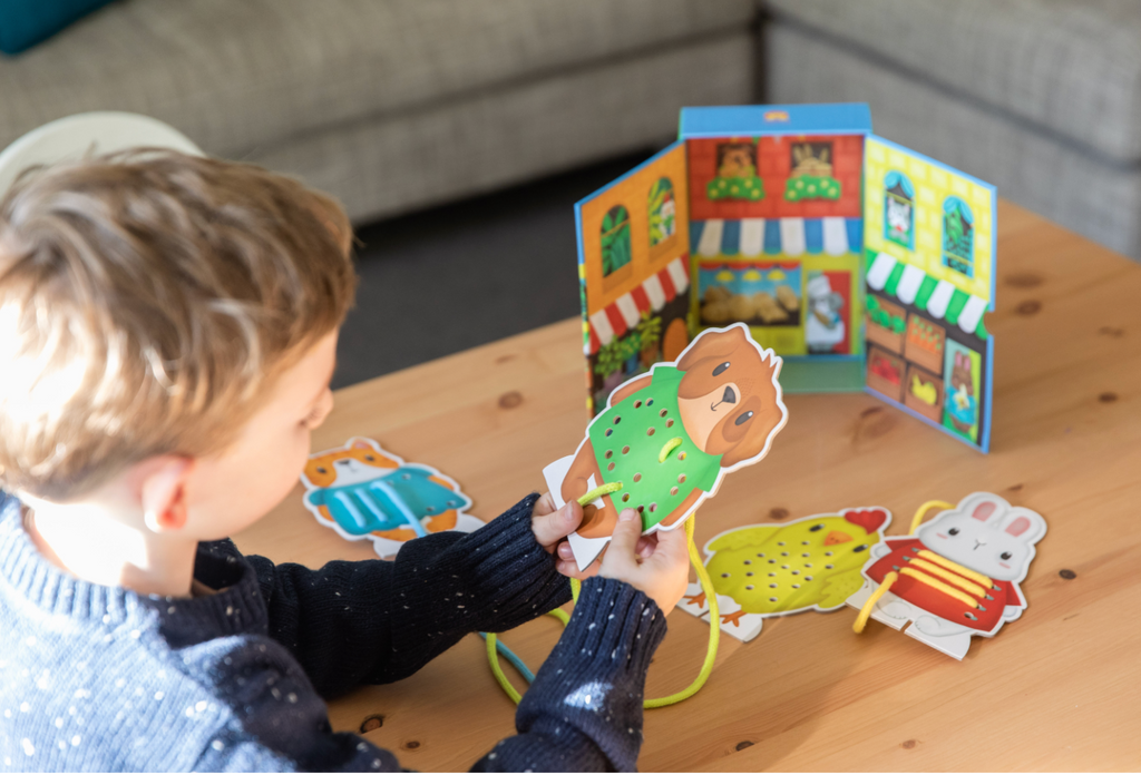 Durable and endlessly reusable, each animal card has a different lacing pattern, so little ones are encouraged to problem solve and adjust their threading technique.