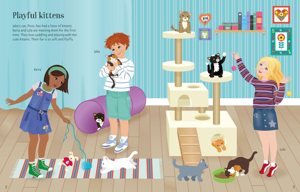 Join the dolls as they look after their pets, as well as interact with those that they dream of having. This fabulous addition to the successful Sticker Dolly Dressing series uses stickers to dress the dolls as they feed and groom their pets, meet their friends with slightly unusual pets, as well as play with puppies, rabbits and kittens.