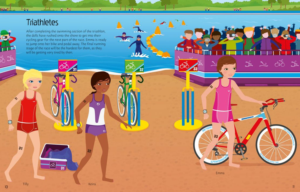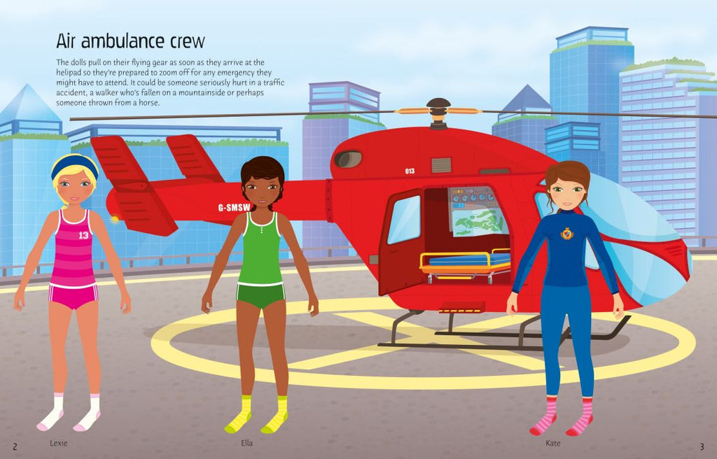 Join the dolls as they get ready for action! Use the stickers to dress the dolls for their exciting jobs, as firefighters, dancers, private investigators, scientists, and more. Each scene is beautifully illustrated and there are over 300 stickers, so you can choose the clothes, accessories and equipment the dolls need.