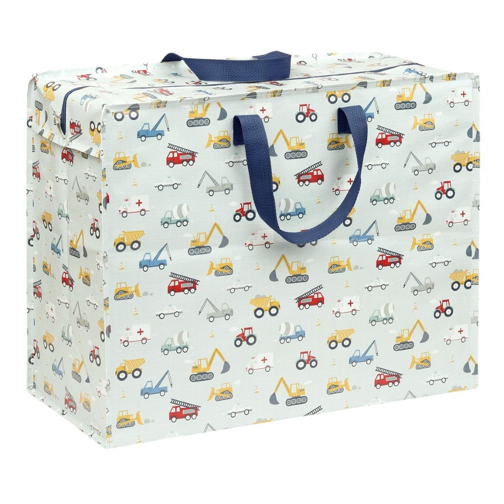 Keep your space tidy in style with the A Little Lovely Company Storage Bag in light blue, featuring a playful and colorful vehicles print. Designed with convenience in mind, this spacious storage bag is made from durable, wipe-clean plastic and comes with a secure zip-top closure and two sturdy navy handles for easy carrying.